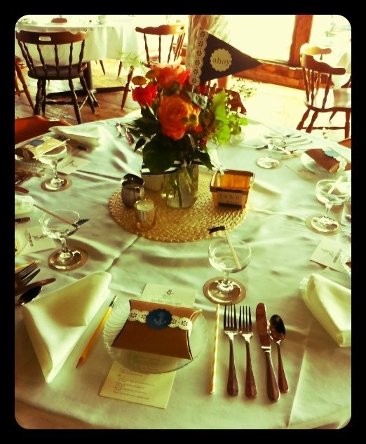 I did berry baskets at each centerpiece filled with custom made nautical-style buttons (why yes, of course I have a button maker):